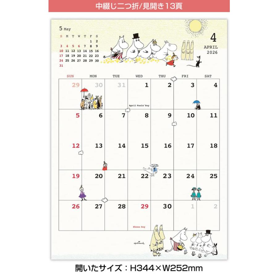 2026 カレンダー 壁掛け ホールマーク 二つ折りカレンダー(小) ムーミン リトルミイ YDC-845-469 (ホ-25) 344×252mm