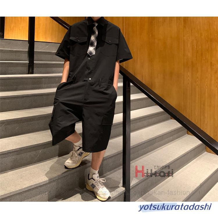 つなぎ メンズ おしゃれ ツナギ 作業服 ボトムス 半袖 ハーフパンツ ゆったり オールインワン 夏物 男性用 オーバーオール