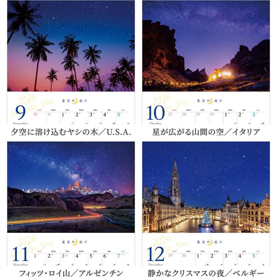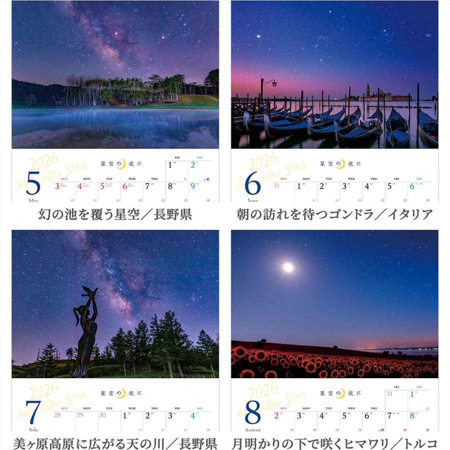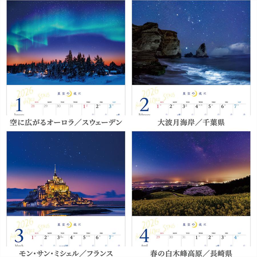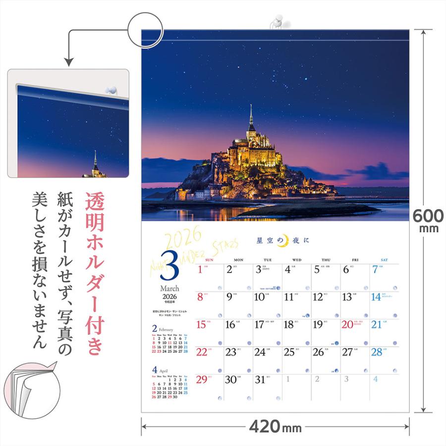 写真工房 『 星空の夜に 』2026年 カレンダー 壁掛け 風景 【透明ホルダー付 300×420】 スマホ壁紙12枚付 YA-24