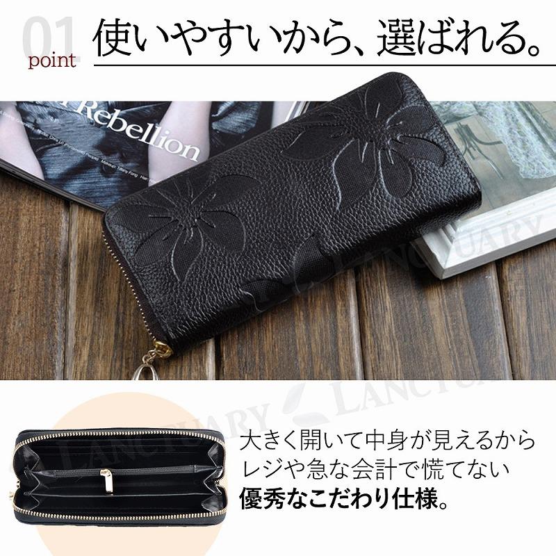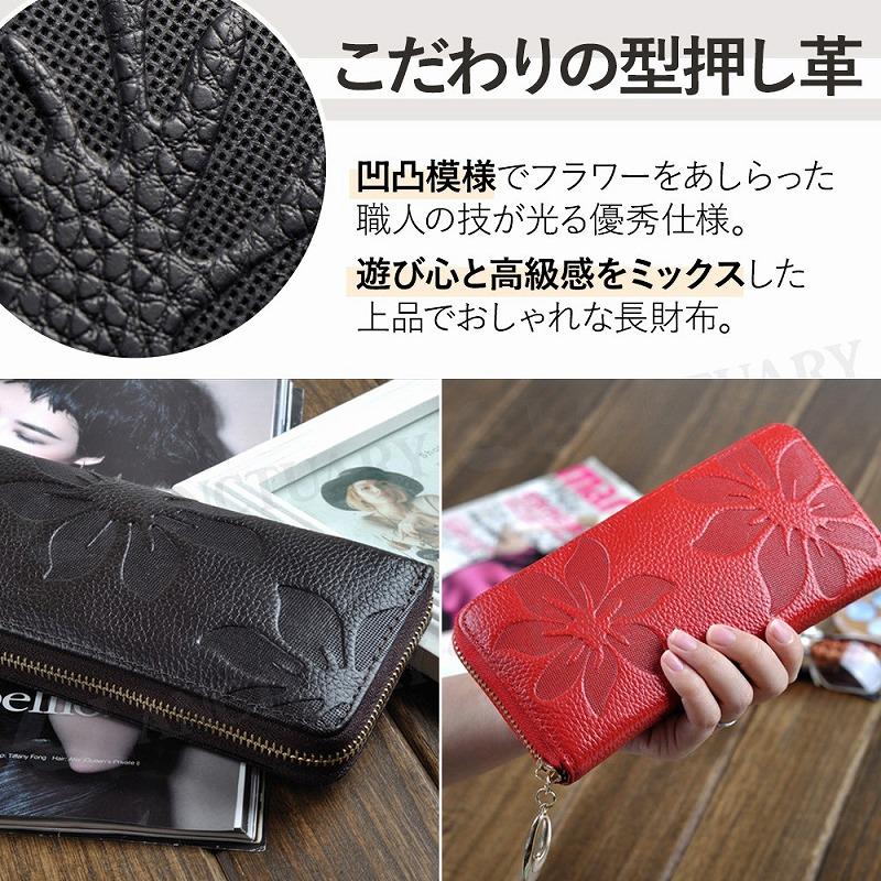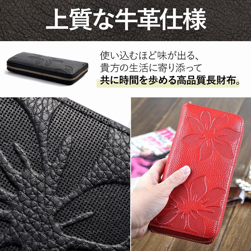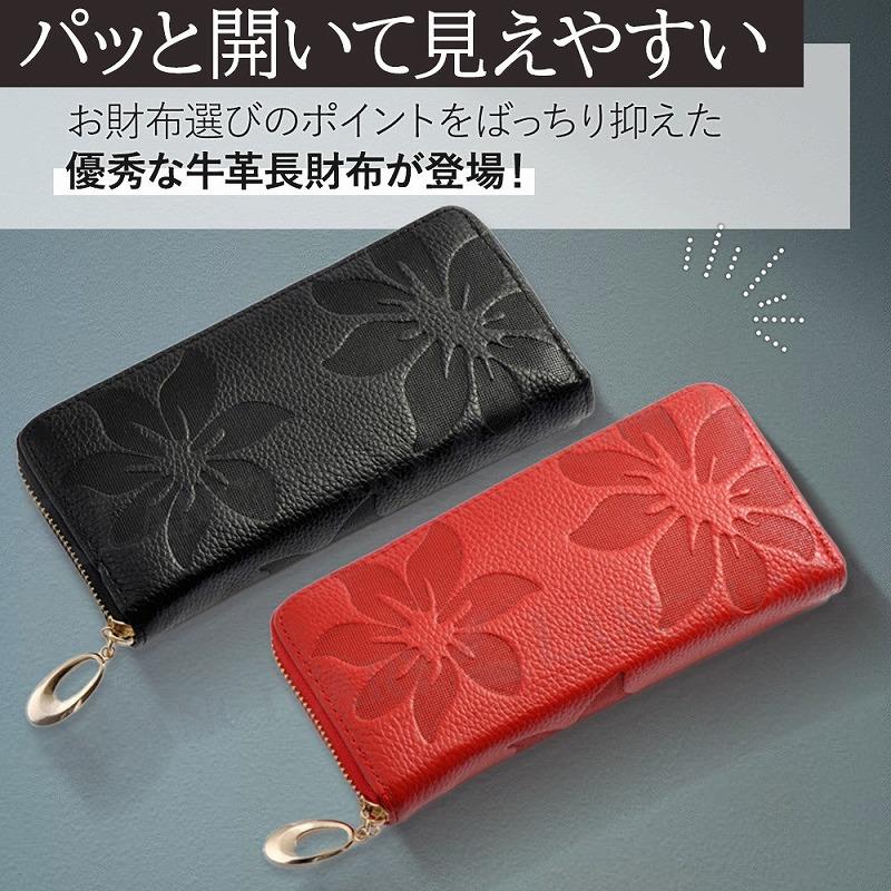 財布 レディース 長財布 牛革 本革 ファスナー ブラック レッド 黒 赤 多機能 大容量 カード収納 レシート コイン 小銭入れ ギフト 贈り物 ポイント利用