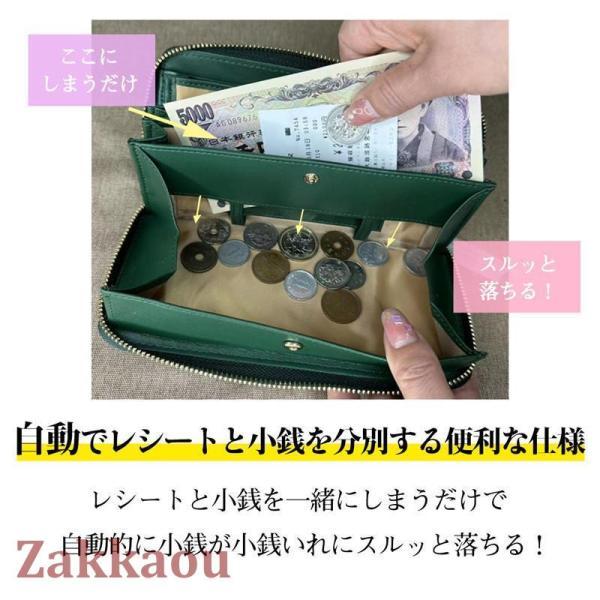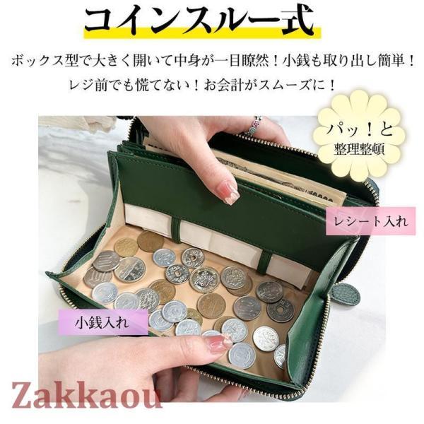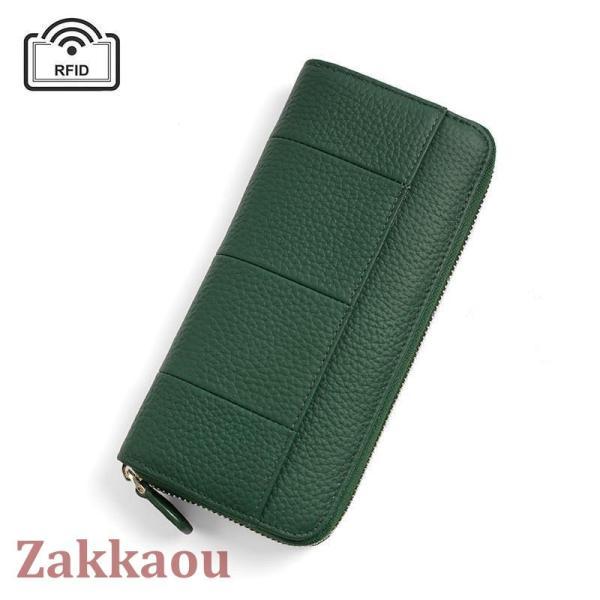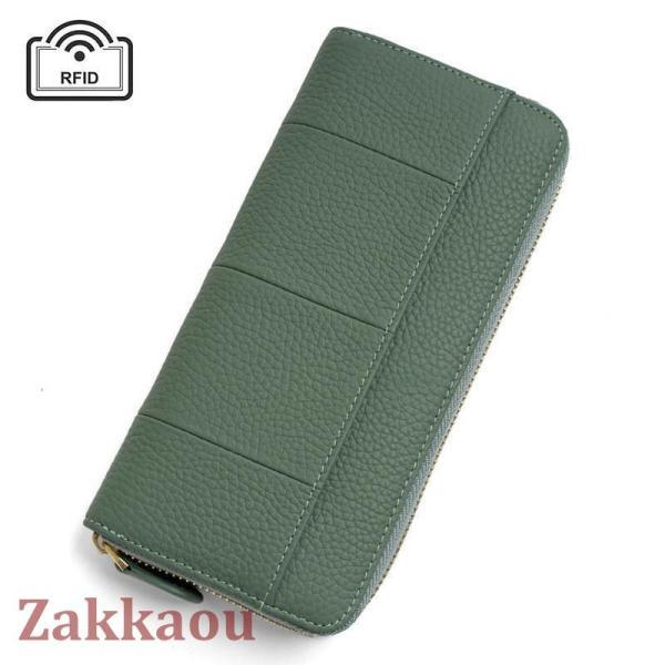 長財布 レディース 財布 じゃばら 本革 小銭入れ コインスルー YKK カード入れ スキミング防止 大容量 ラウンドファスナー 上質牛革 多機能 緑